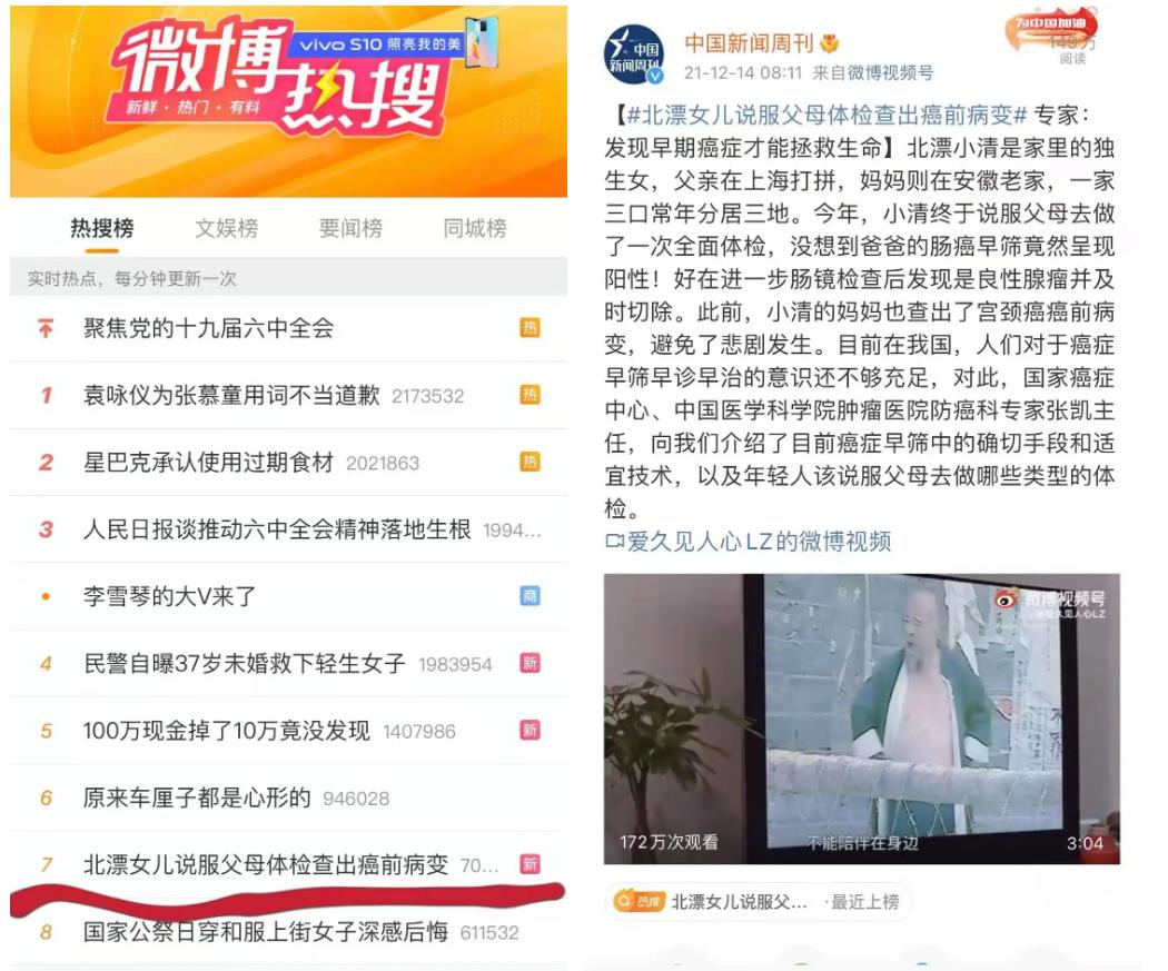 近日,一则“北漂女儿说服父母体检查出癌前病变”的新闻冲上微博热搜榜,让很多年轻的朋友心头一紧。