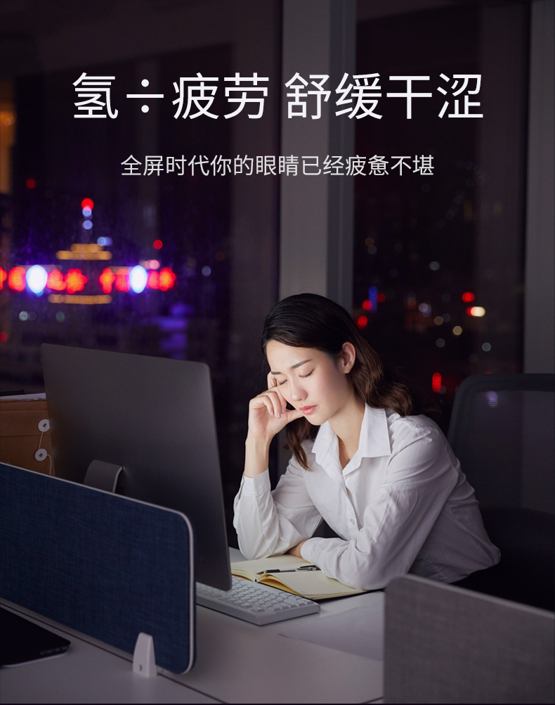 氢水仪专门为长期用眼的人群打造,针对长期用眼易出现的眼睛内部问题如干眼症、红血丝,眼睛外部问题如眼睛干纹、鱼尾纹等都有良好的缓解和治疗作用,是长期用眼人群的福音。
