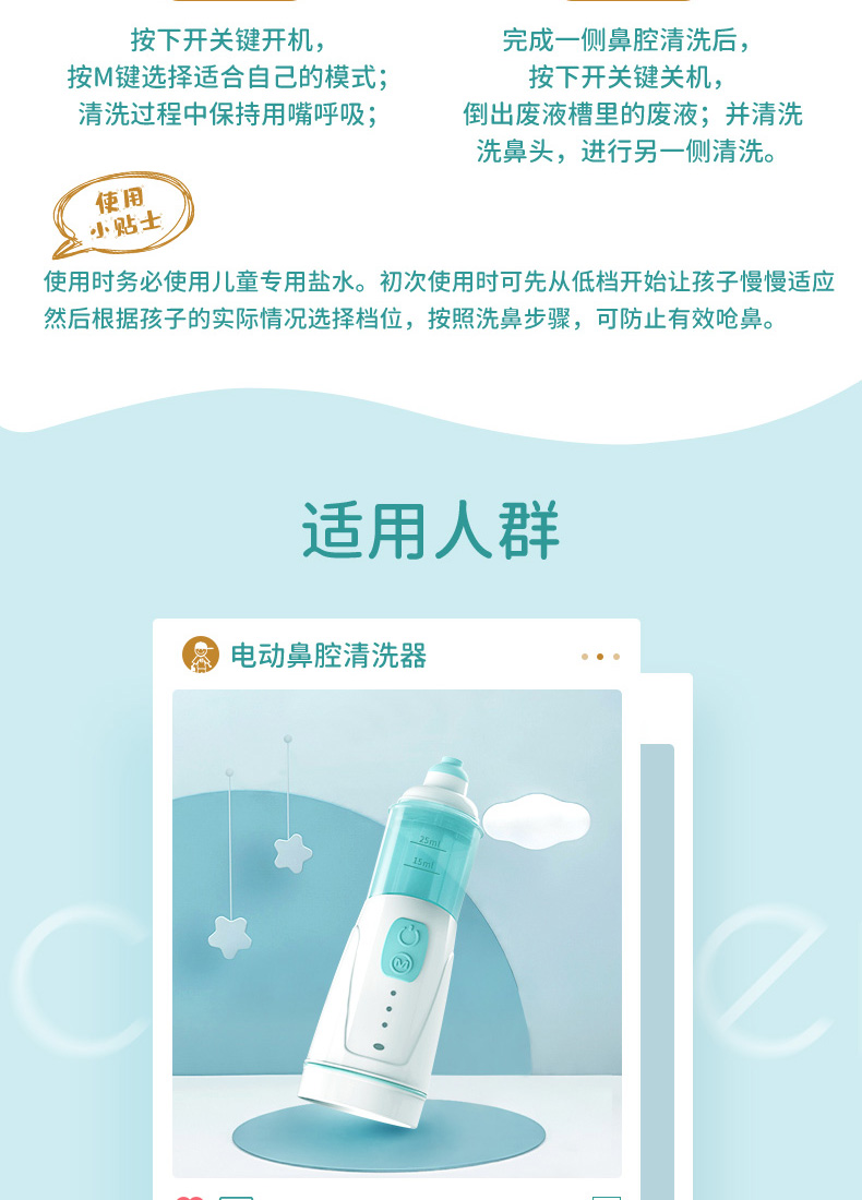 乐普ER电动鼻腔清洗器疏通鼻腔,缓解敏感,呵护鼻粘膜。