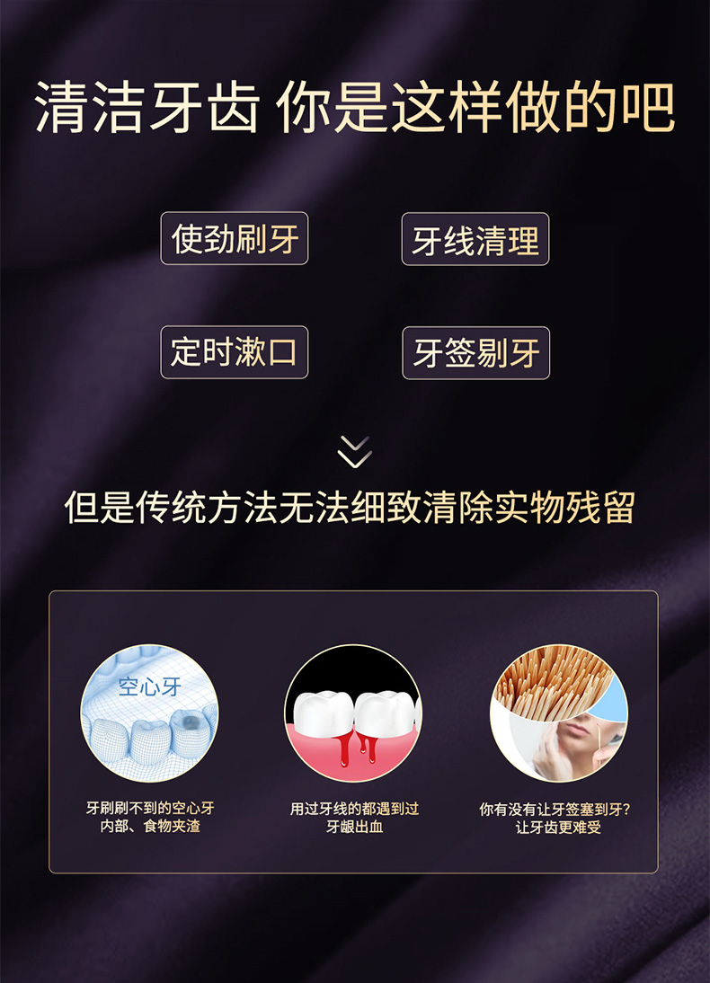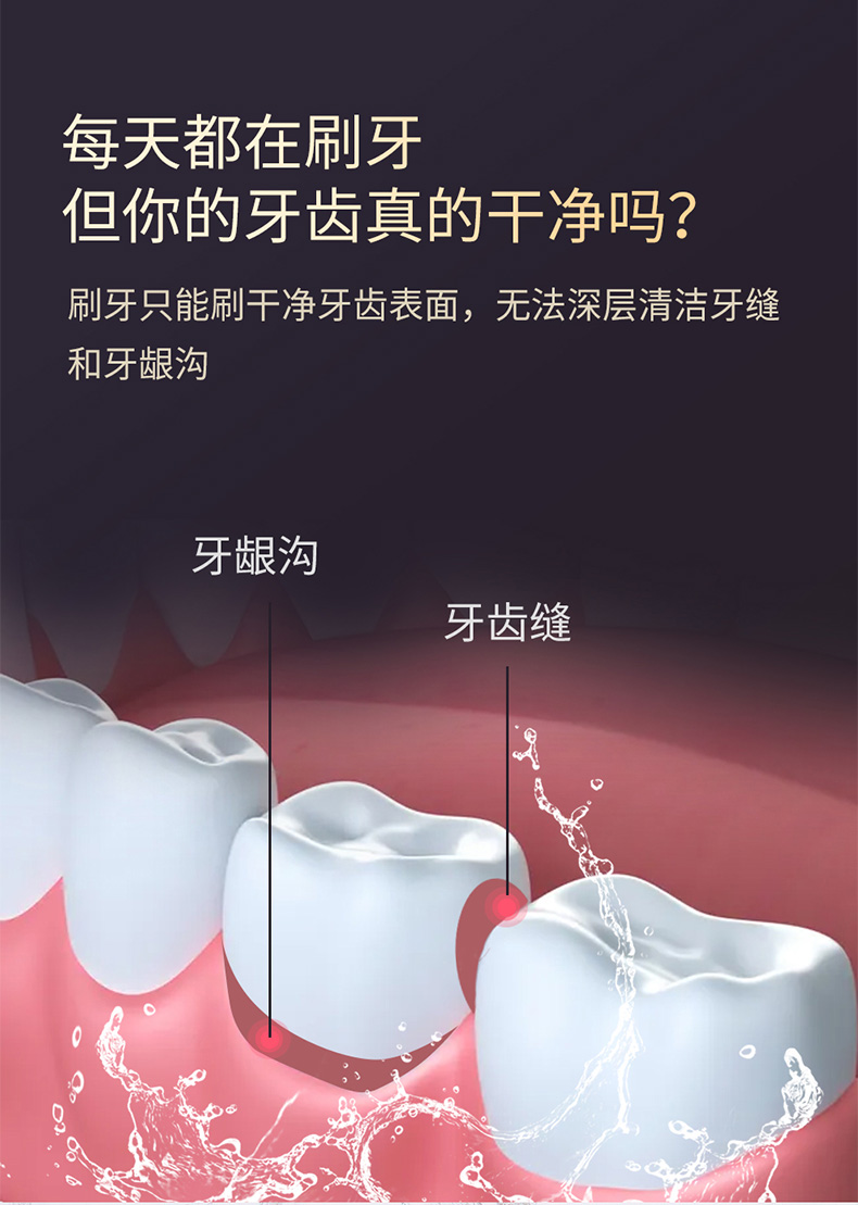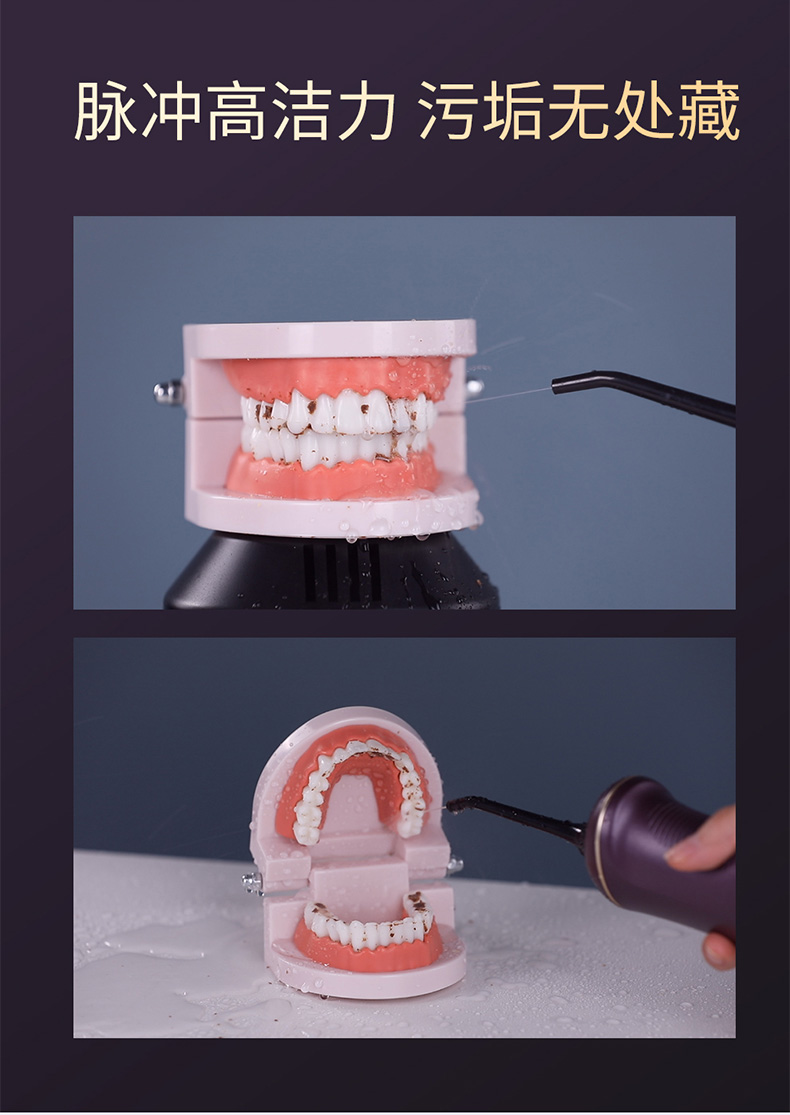 便携式冲牙器专注护理,一冲洁净,冰爽水力。